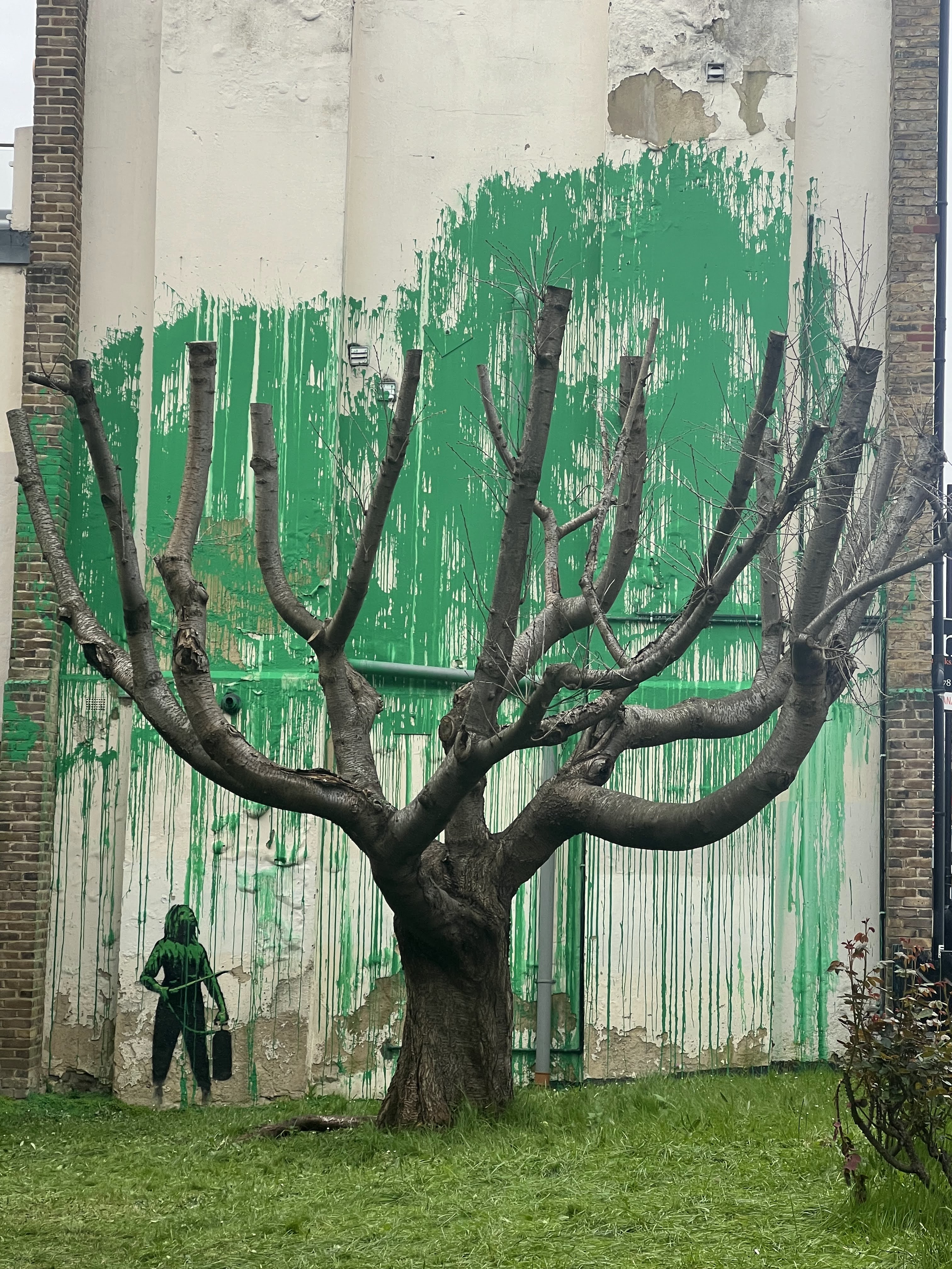 Encountering street art is always an unexpected treat. My obsession with street completion has taken me beyond the county as well and I encountered this fresh Banksy piece while completing streets in London.